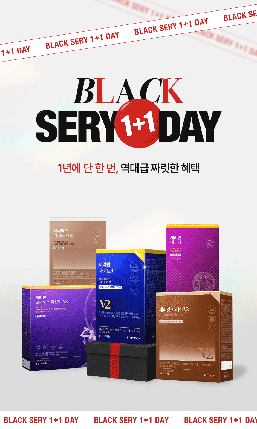 | 내용량 | [세리번 나이트] 4주_86.8 g / [(650 mg X 2정, 800 mg X 1정, 1,000mg X 1정) X 28포] [세리컷 프레소V2] 196 ml (14 ml x 14포) [세리번 오아시스 라인컷V2] 224 g / 8 g x 28포 [세리박스 가벼운 효소] 84 g / 3 g x 28포 [세리번 메두사] 140 g / 5 g X 28포 |